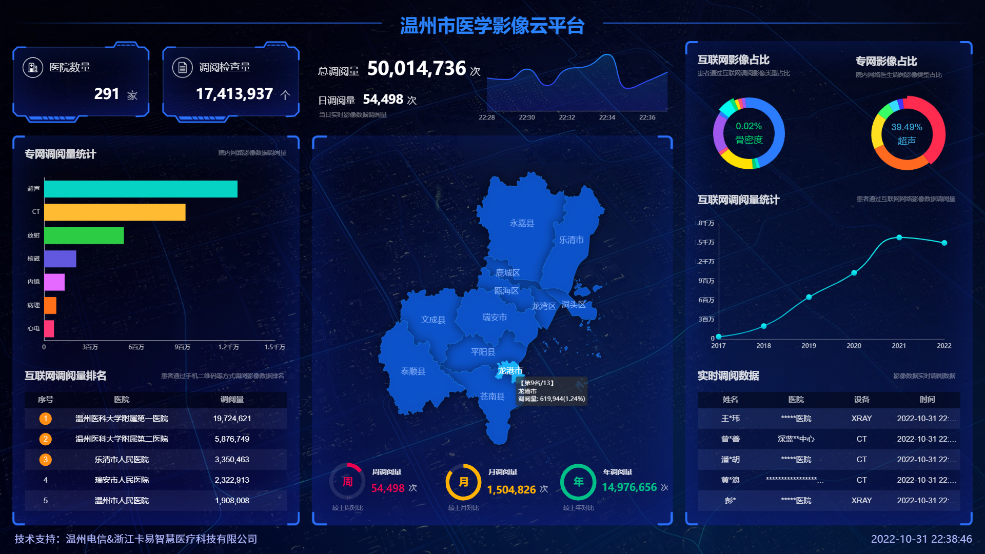 浙江省內最大云影像平臺 日均移動調閱量7.5萬次 平臺總調閱量超過一億次 2018年浙江省醫療衛生服務領域“最多跑一次”改革十佳案例(影像云唯一)